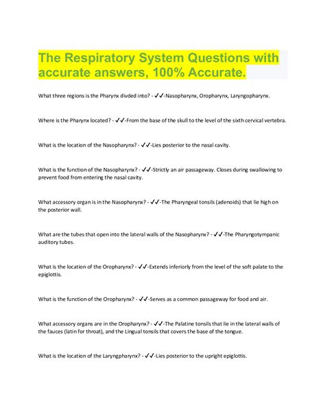 Download respiratory system questions answers Doc