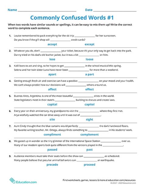 Read Online Commonly Confused Words Worksheet 1 Answers Reader