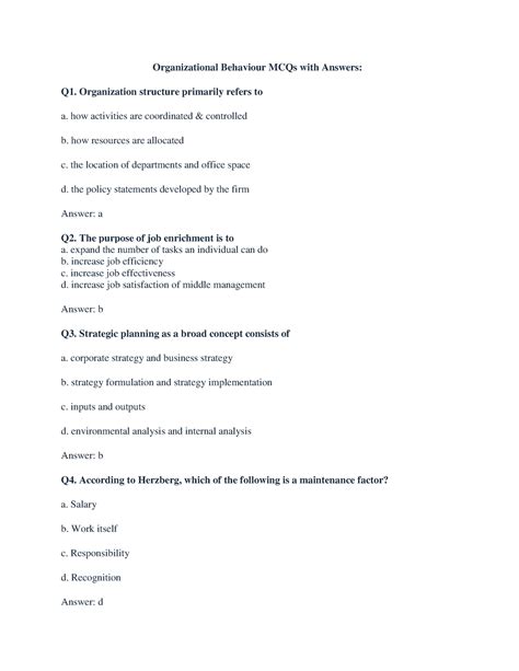 Read Online Organisational Behaviour Objective Type Questions Answers Epub